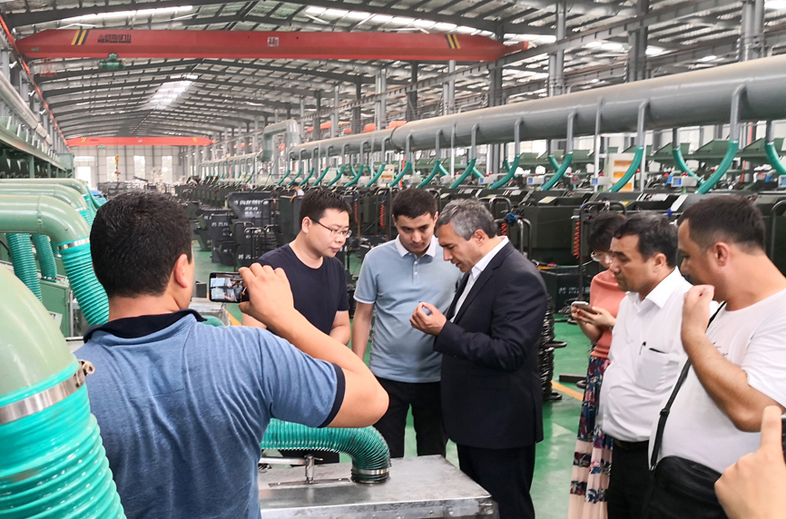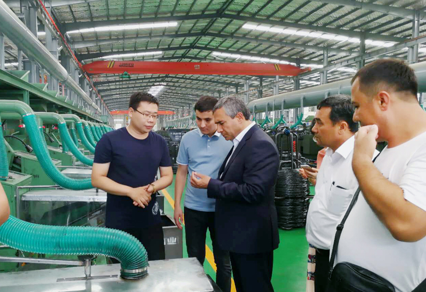 7月14日下午,烏茲別克斯坦KOKAND CITY州長 Usmonov Maruf蒞臨青龍劍釘業(yè)經(jīng)濟(jì)開發(fā)區(qū)公司。青龍劍釘業(yè)總經(jīng)理馬群澤熱情接待了到訪的Usmonov Maruf先生及隨行人員,并陪同Usmonov Maruf先生到車間進(jìn)行參觀考察。