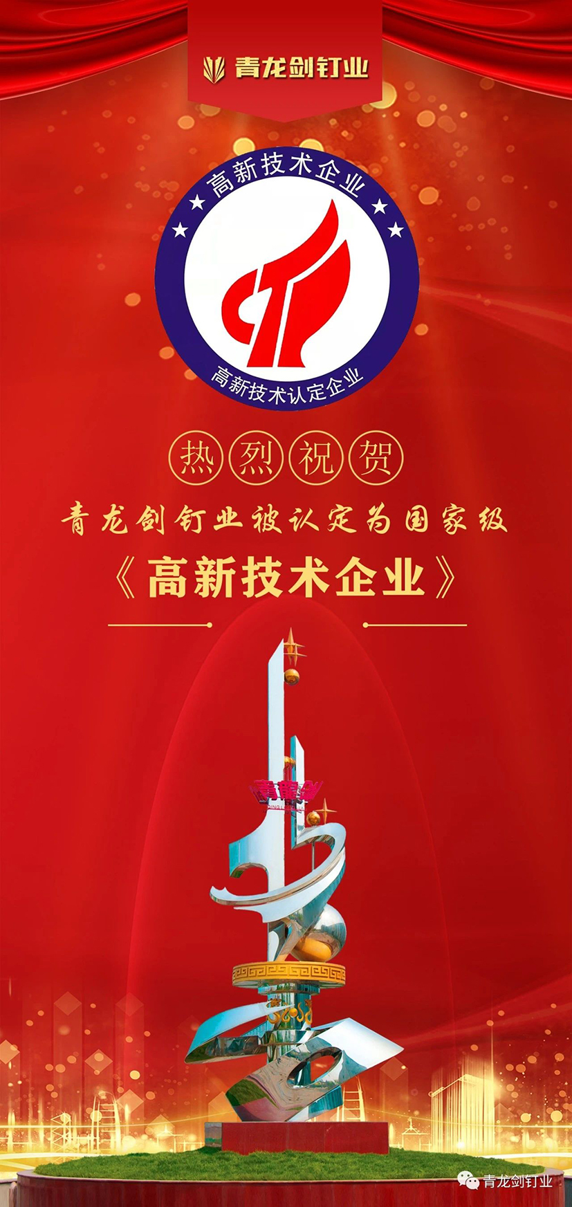 青龍劍釘業(yè)被認(rèn)定為國家級高新技術(shù)企業(yè)