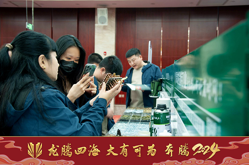 會(huì)議間隙,經(jīng)銷商參觀公司產(chǎn)品展區(qū),對(duì)公司推出的新產(chǎn)品頗感興趣,并咨詢、拍照。