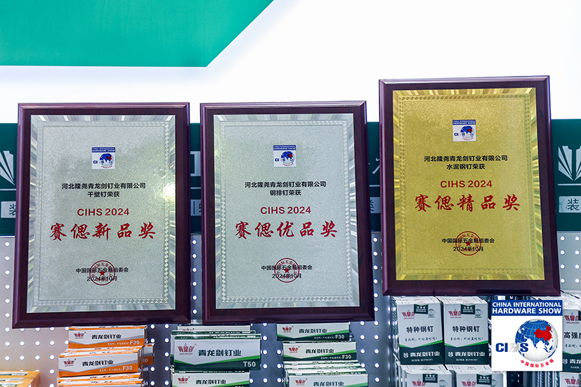 中國(guó)國(guó)際五金展(CIHS)為全球五金行業(yè)提供一站式的采購商貿(mào)平臺(tái),吸引了來自世界各地的行業(yè)領(lǐng)軍企業(yè)和專業(yè)人士參與。此次參展的鋼釘、氣動(dòng)釘、螺絲、鉆尾等多系列產(chǎn)品中,青龍劍水泥鋼釘、鋼排釘、干壁釘三款產(chǎn)品憑借卓越的品質(zhì),在眾多產(chǎn)品中脫穎而出,分別榮獲“CIHS2024賽偲精品獎(jiǎng)”、“CIHS2024賽偲優(yōu)品獎(jiǎng)”以及“CIHS2024賽偲新品獎(jiǎng)”三大獎(jiǎng)項(xiàng),彰顯了公司在釘類產(chǎn)品領(lǐng)域的領(lǐng)先地位。