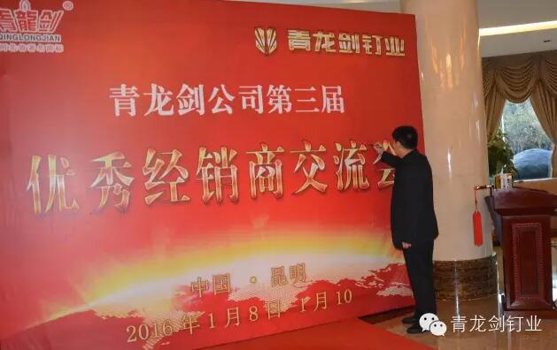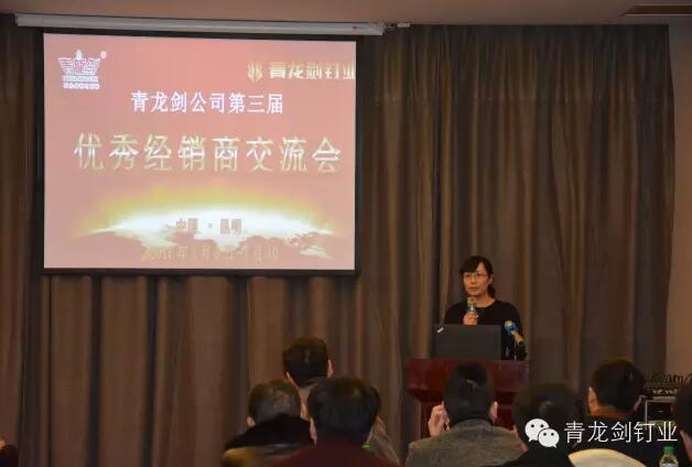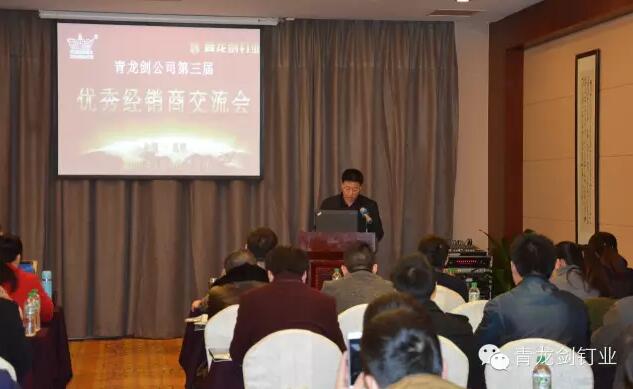 公司董事長馬志華對全國經(jīng)銷商的到來表示誠摯的感謝。——“感謝各位經(jīng)銷商來參加2016年度青龍劍公司第三屆優(yōu)秀經(jīng)銷商交流會,歡聚一堂共同探討青龍劍釘業(yè)發(fā)展大計。