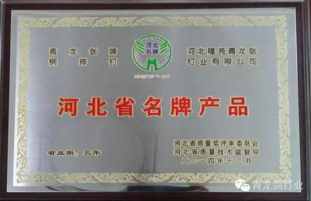青龍劍釘業(yè)作為業(yè)內(nèi)知名的釘類產(chǎn)品供應(yīng)商,致力于生產(chǎn)優(yōu)質(zhì)高效的釘類產(chǎn)品。此次“河北省名牌產(chǎn)品”榮譽的獲得,表明青龍劍產(chǎn)品質(zhì)量獲得了充分的認(rèn)可,公司行業(yè)知名度和品牌影響力將得到進(jìn)一步的提升。